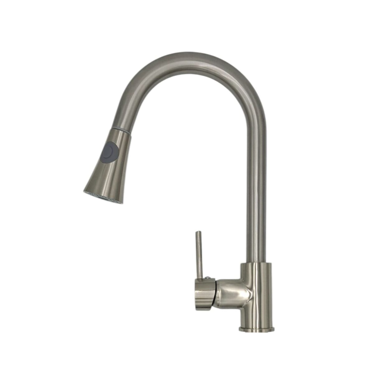 Enhance your kitchen’s style and functionality with this sleek pull-down tap in brushed nickel. Its high-arc spout offers excellent clearance, while the pull-down sprayer provides flexibility for rinsing and cleaning. Made from durable, corrosion-resistant and lead-free brass, this tap ensures safe, long-lasting performance. The single-handle design allows for precise control of water temperature and flow, making it both practical and elegant. Perfect for modern and minimalist kitchens with a 5 Star WELS Rating.